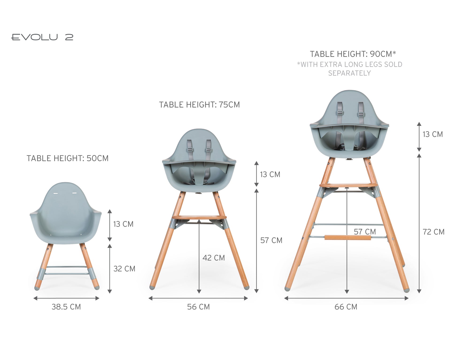 - 2-in-1 high chair can be adjusted to 2 table heights: a standard dining table of 75 cm and a children's table of 50 cm