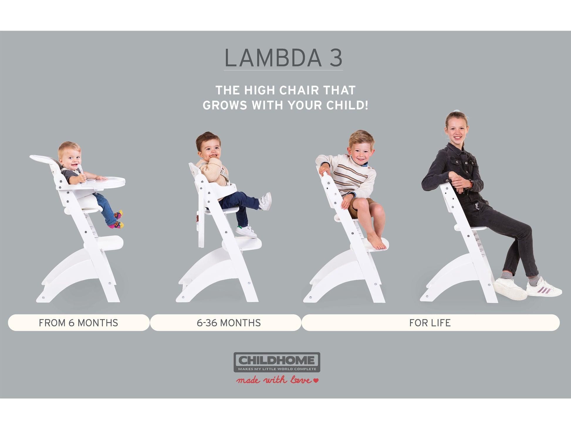 - High chair that will last for years and grows with the child: 6 months+