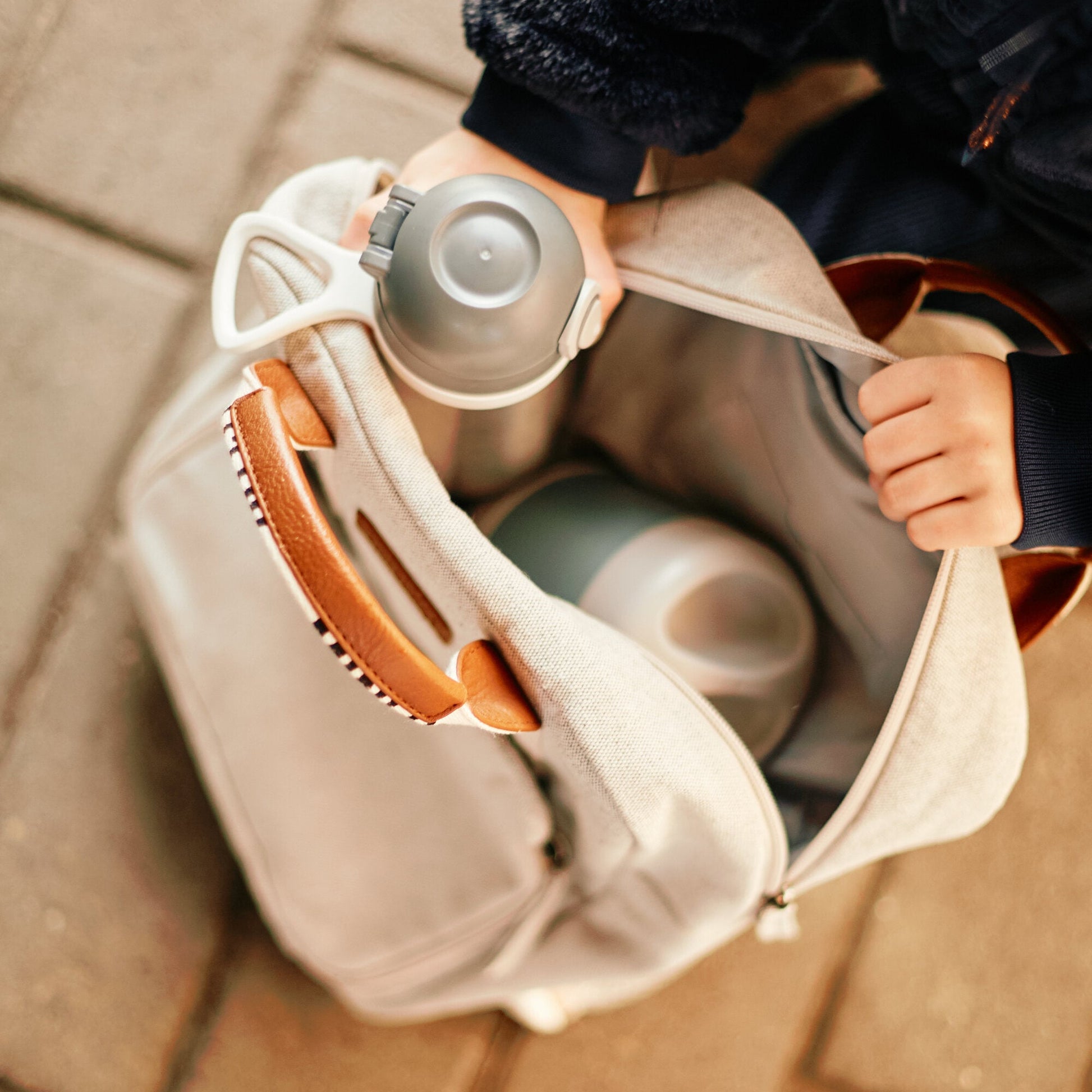 Discover Mini Club! This cute little backpack is perfect for preschoolers from 3 to 5 years. It has the ideal size to take everything they need. It includes a special compartment for their lunchbox, an insulation pouch for their beverages, a card holder to add their name and addres and a front pouch to store other items. This bag is a little bit bigger than the My First Bag. Twinning is winning at Childhome: this bag looks great in combination with the Family Club backpack for adults. Available in off-white and green.