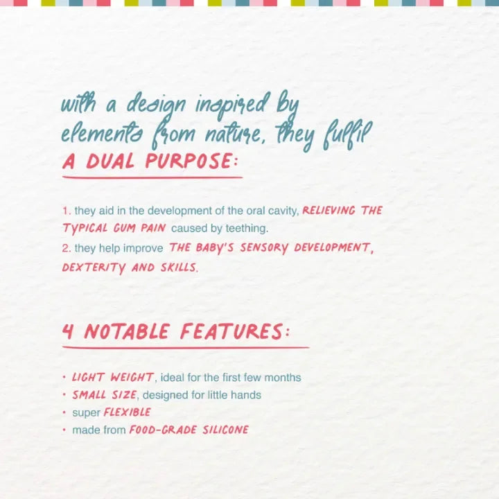 Supports Motor Development: The teether promotes gripping skills and hand-eye coordination, which are essential for your baby’s growth.